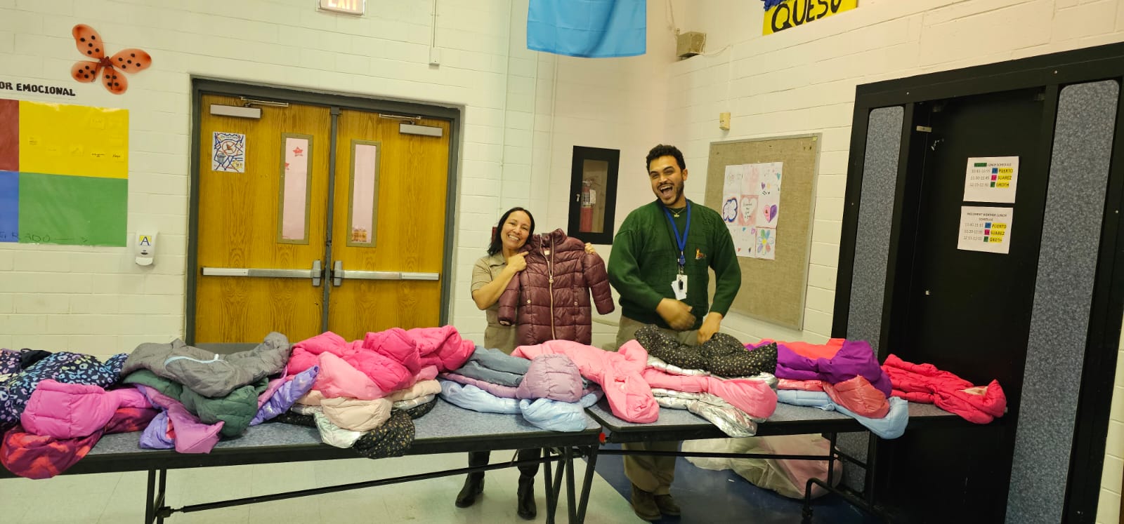 One of the highlights was the coat distribution, where families were paired with a “personal shopper,” and students got to choose, try on, and show off the winter coat that felt just right for them. The smiles said it all as students walked away warm, confident, and ready for winter.
