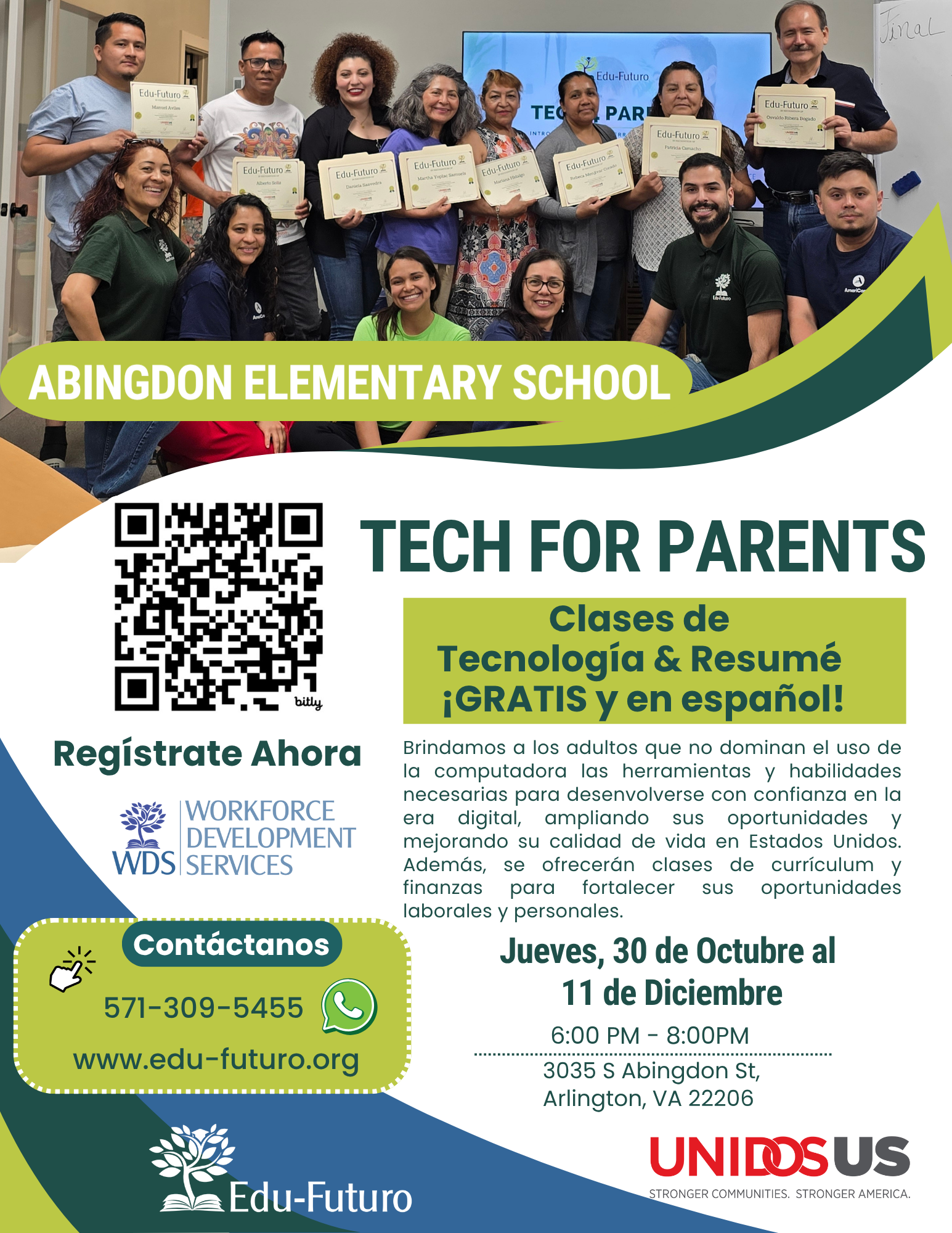 To register, contact the Bilingual Family Specialist or Edu-Futuro at 571-309-5455.